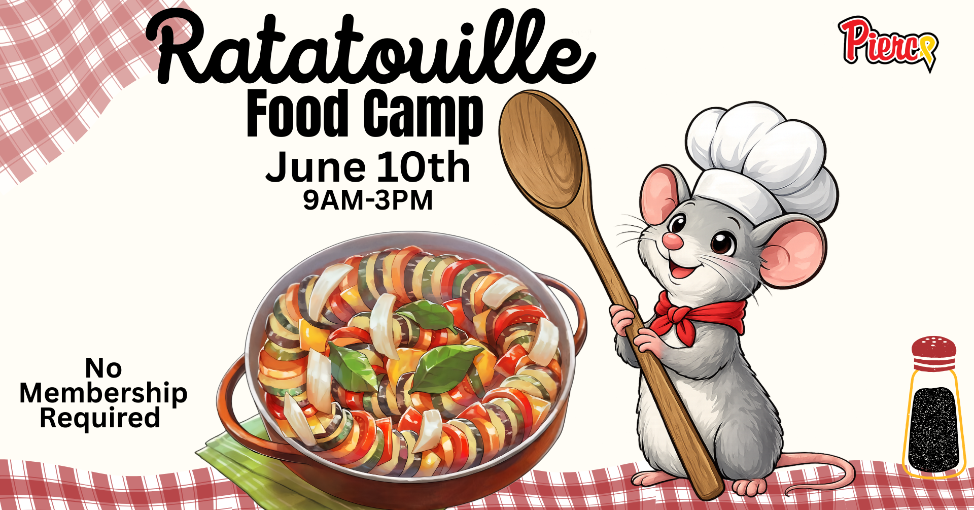 Join us for a full day of creativity and flavor at Pierce Athletics during Ratatouille Food Camp! Campers will mix, taste, create, and explore in a day filled with food-inspired fun and high-energy movement.