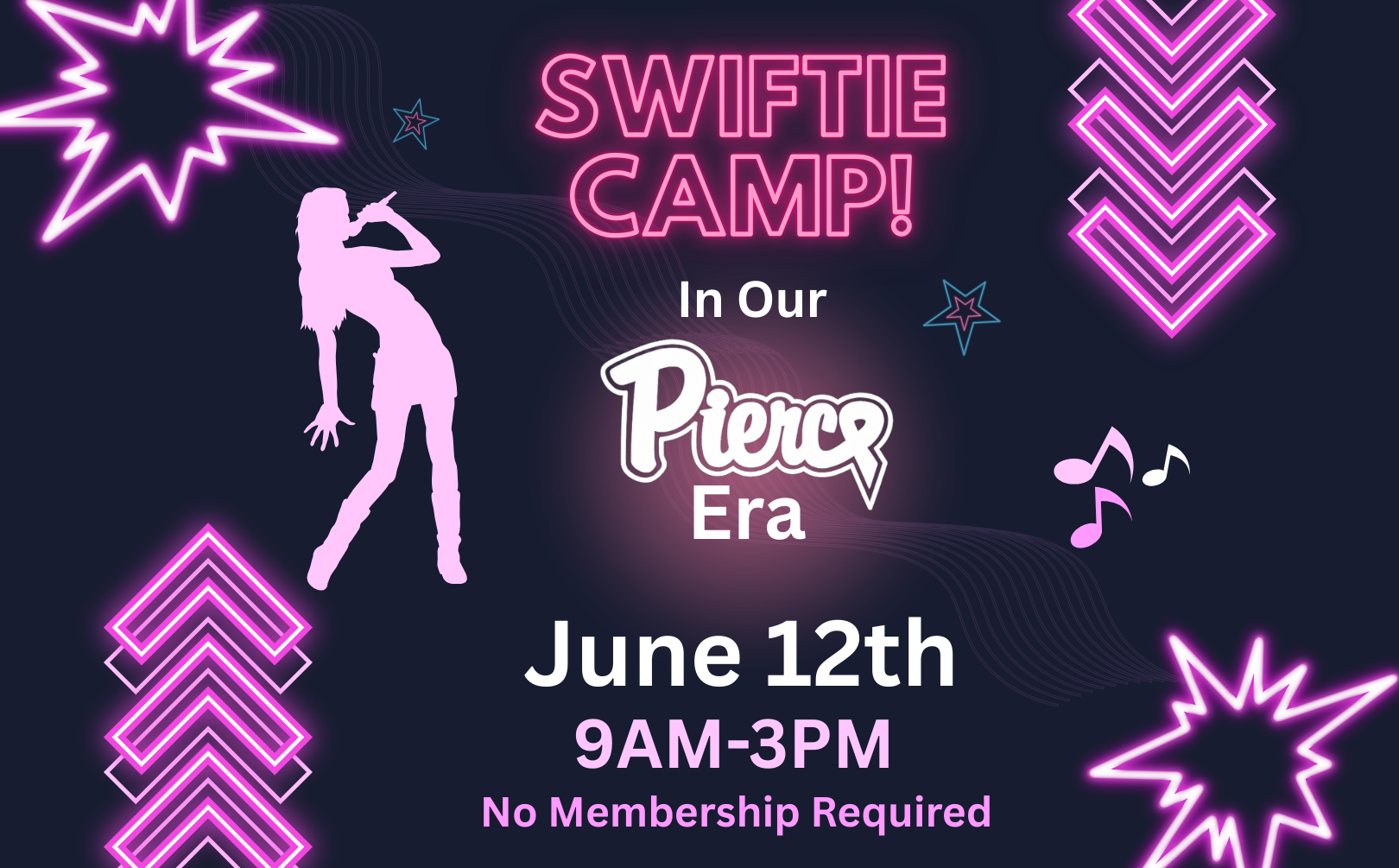 Throughout the day, campers will enjoy: high-energy games & obstacle courses, dance parties to their favorite Swiftie songs, sing-alongs and performance-style fun, themed crafts and creative activities, team challenges, and plenty of Pierce fun.